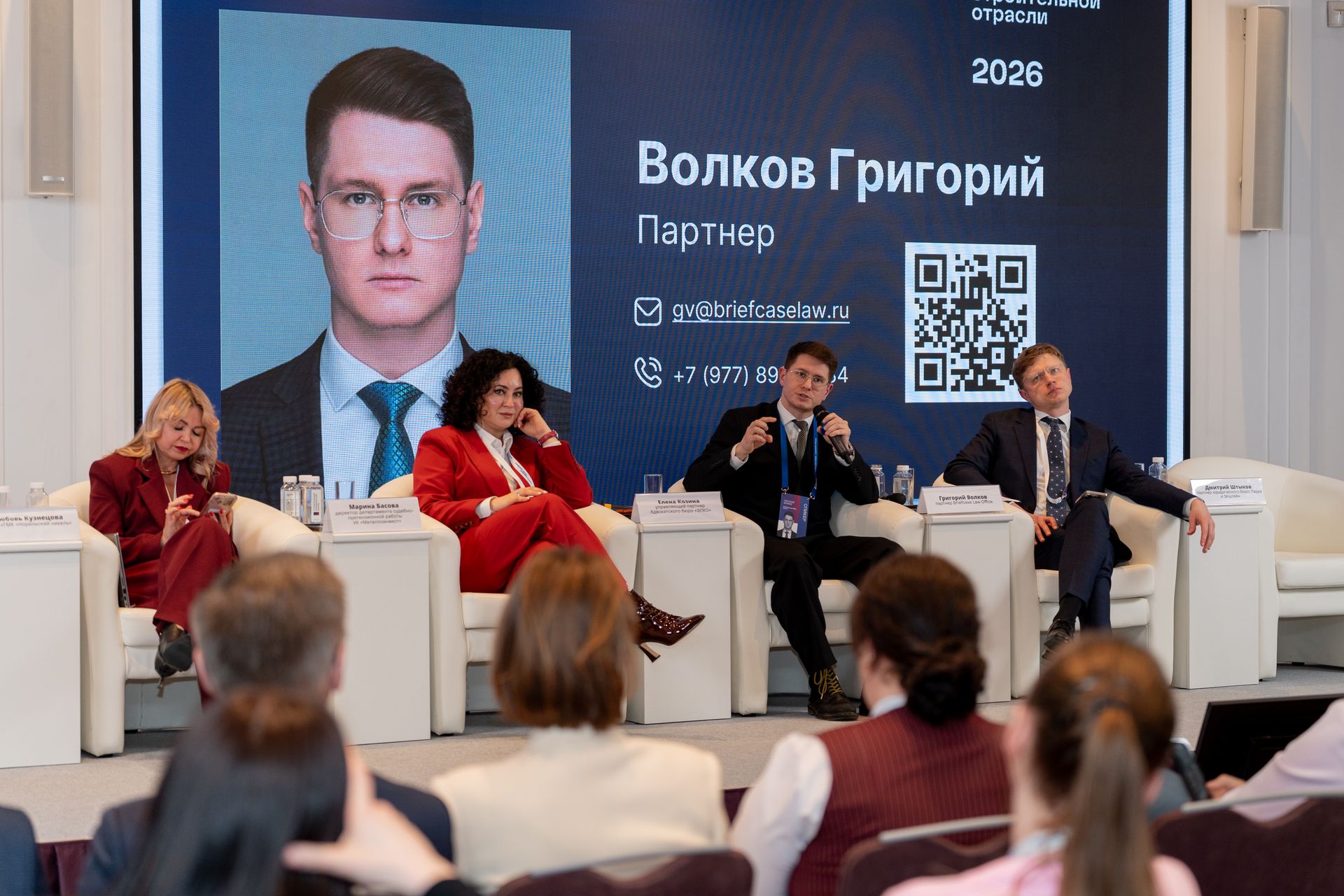 Особый интерес вызвала панельная сессия «Строительные споры высокой сложности: эффективные стратегии защиты, тактика процессуального взаимодействия и формирование доказательной базы в проектах с высокими ставками». В рамках этой дискуссии Григорий Волков, партнер Briefcase Law Office, выступил с темой «Нотариальная экспертиза: польза в подрядных спорах».